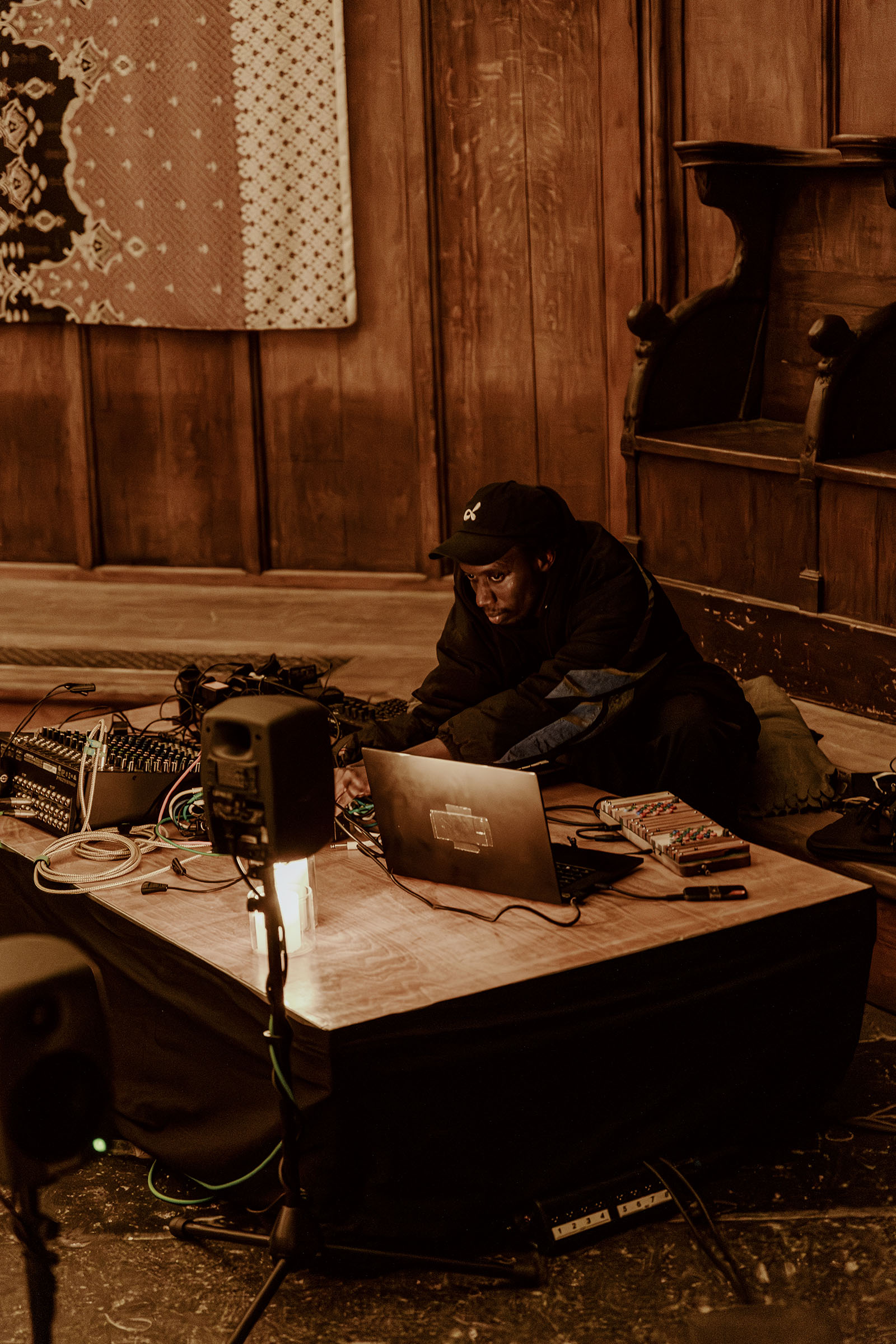 The Oude Kerk has its own story – it’s been standing since the 1300s. Such an imposing monument that you almost don’t feel the need to add anything. Working here is about collaborating with what’s already present: its history, materials, and shape. Luckily, the Oude Kerk team are experts in hosting art projects while preserving the building’s integrity. When Ivan Cuic (Kantarion Sound), Matteo Weigele (Creative Producer, Minimal Collective & Oude Kerk) and Orpheu de Jong (Music Curator, Oude Kerk) joined us for the first walk through the space, the natural acoustics were immediately apparent. Even a few people inside revealed long echoes and reverberations. After multiple visits – mapping acoustics, testing placement, adjusting volume – we settled on a line-array setup in the center, projecting upward toward the gallery rather than a traditional stage, letting the church itself guide the experience. Curation-wise, we approached Oude Kerk as a living archive. Contemporary musicians were invited to respond to its history and acoustics, whether in pre-production or live. Rehearsals, the organ, and even 3D scans of the building helped artists understand the space before stepping inside. We build carefully on elements from the 1300s – windows, stones, ceilings – all artworks reflecting the city’s historical wealth and power.