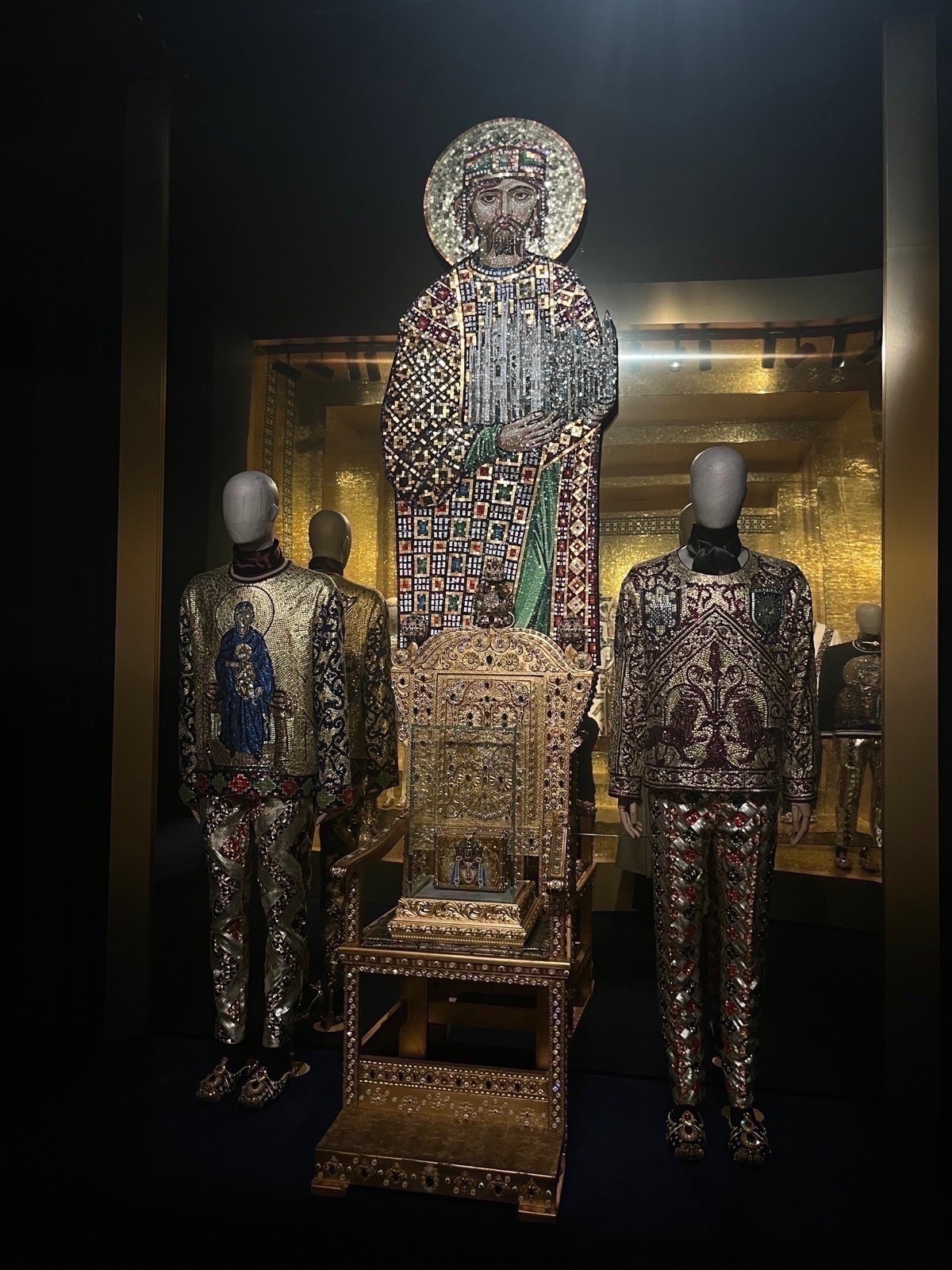 In a society that tends to solely project its gaze towards the future, the two designers lead us backwards towards the appreciation and exaltation of some of the most significant human artworks: white baroque, grand opera, the mastery of Venetian glass, the Leopard, sumptuous architecture, or even Byzantine mosaics… are just some of the great soulful pillars of the brand. Origins are fertile ground for new horizons, and knowing how to incorporate them into one’s own progress is what constitutes a true creative soul. As an introduction to the exhibition, renowned visual artists (such as Felice Limosani, Obvious Art, Alberto Maria Colombo, Quayola, Vittorio Bonapace, and Catelloo) were chosen to create works capable of offering a reinterpretation of the brand and an opening towards the contemporary artistic scene. As for the heart of the exhibition, everything was conceived as a grand hymn: to sacredness, craftsmanship, our homeland, a fertile ground for creative inspiration.