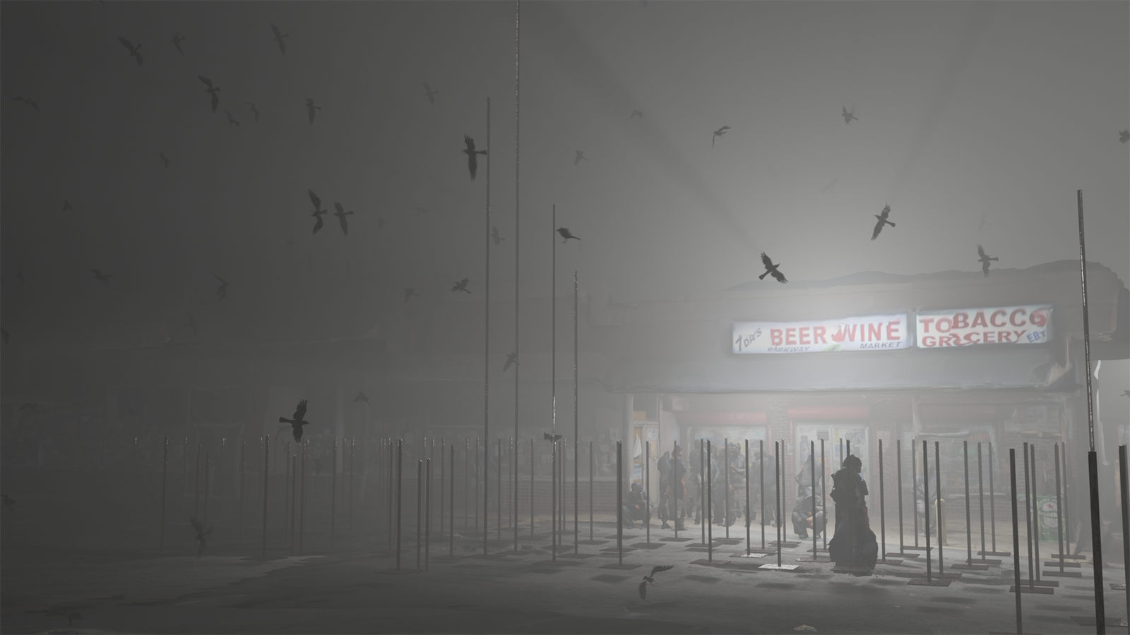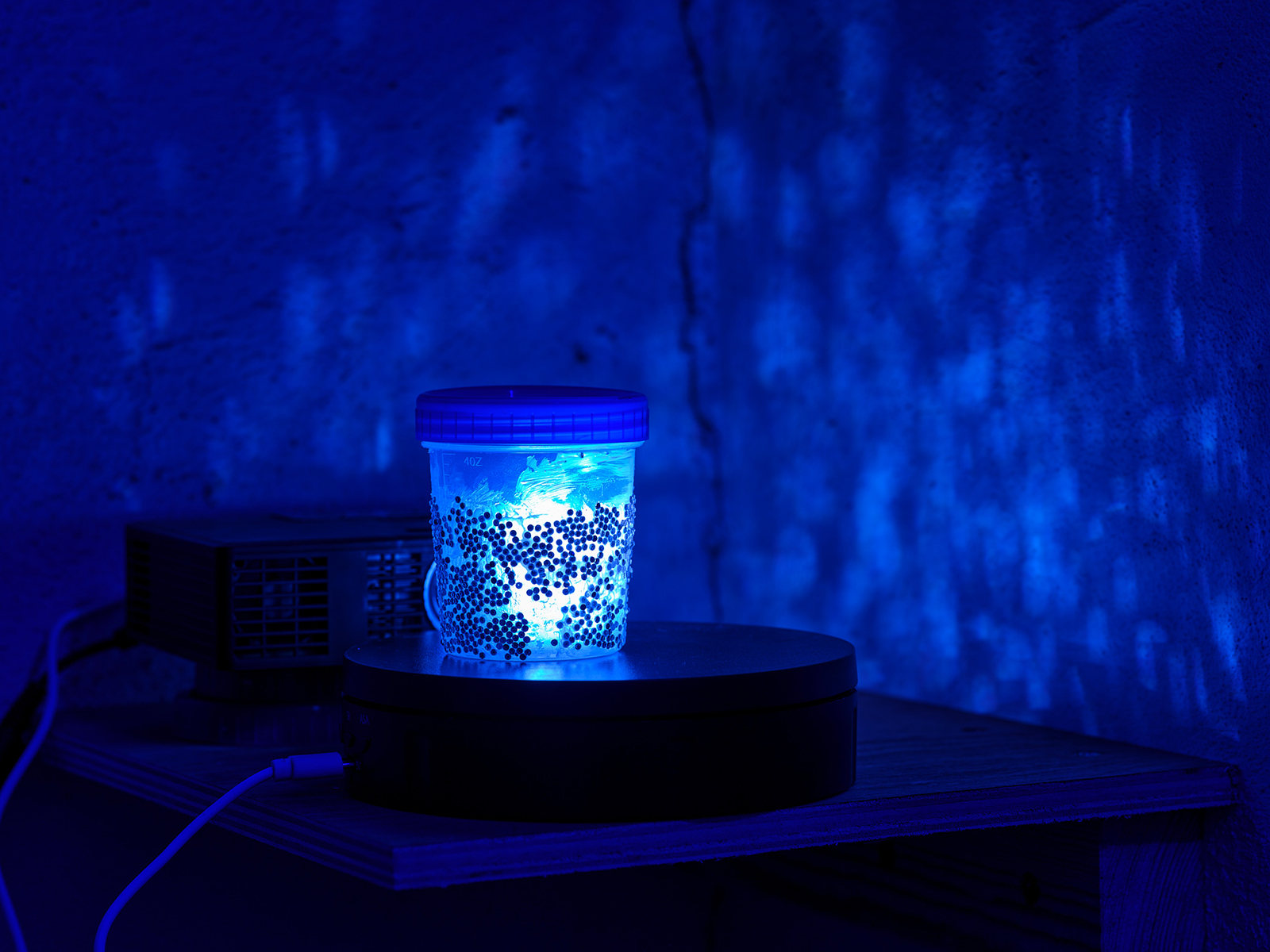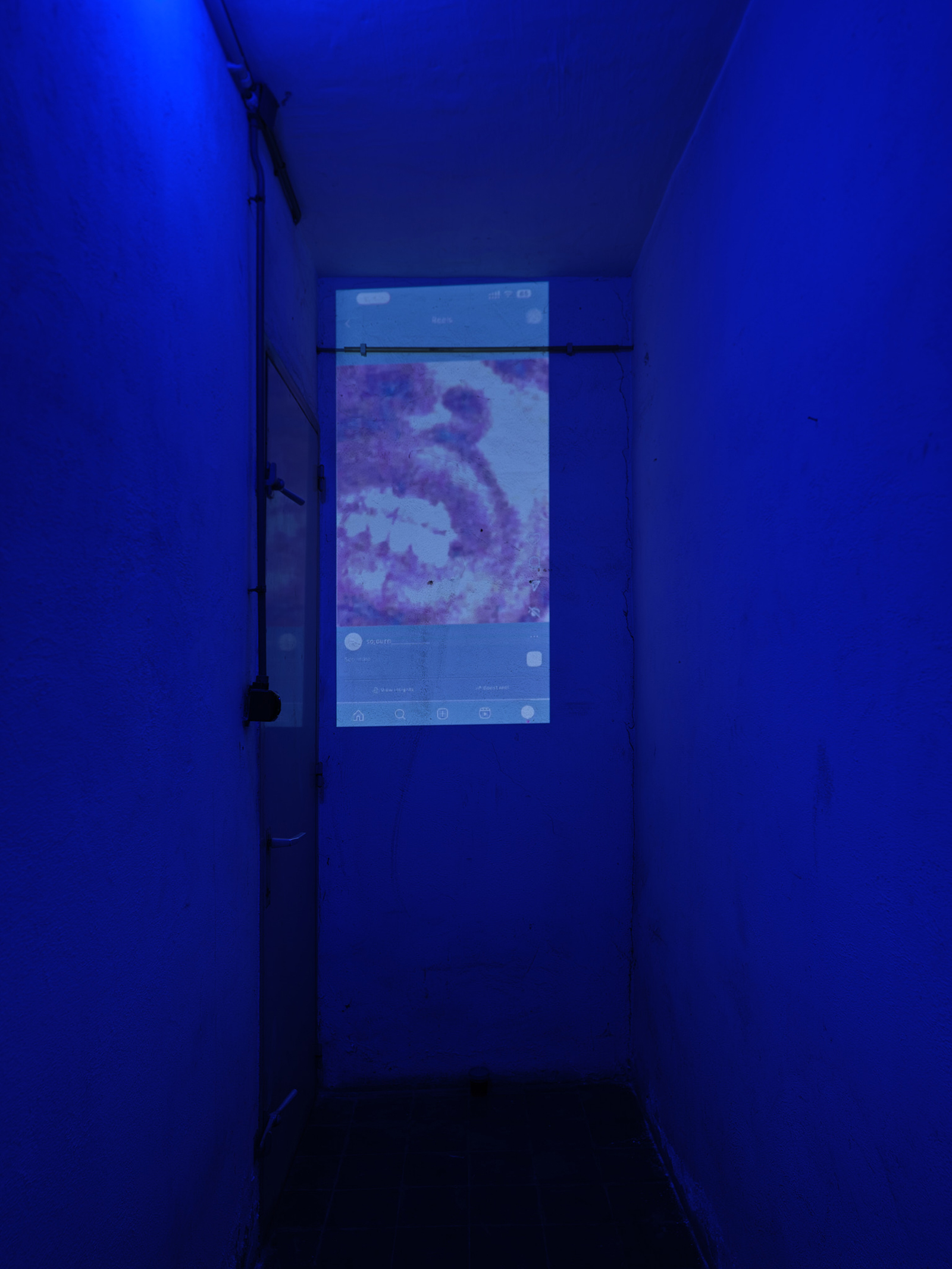 Just before entering TICK TACK Gallery, the viewer can already have a grasp of the exhibition, as one sees it from the street through the wide front window: an evenly distanced mass of metal rods fixed into blocks of grey cement occupying the main room. The concrete has not been smoothed; the rods are slightly off-centre. They seem to lean toward one another, as if unsure of their own function, the only irregularities in this deadly repetition of elements. Their presence is quiet, somehow heroic, as if they had traversed calamities to reach the polished ambient of the gallery. It doesn’t take too long to interpret them as some form of post-apocalyptic menhirs, signaling the presence of a cemetery unmoored from memory. As a matter of fact, the visual origin of this sculptural gesture lies in a scene from the anime Evangelion: 2.0 You Can (Not) Advance, in which the main character encounters his father amid an expansive common graveyard of identical burial indications. Carpenter reframes this cinematic memory as an invitation to distinguish the singularity over the mass, to give attention to the single stories even when they are blurred by the names that history wants to erase.
