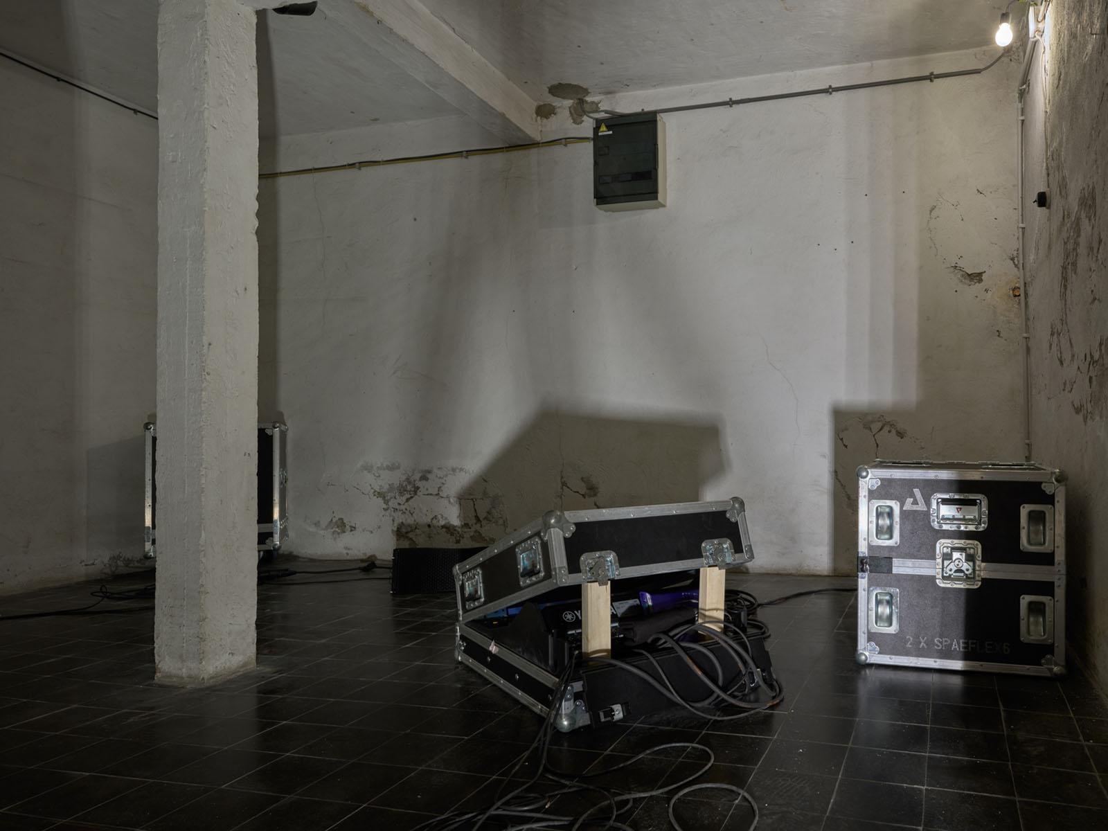 As the very space of TICK TACK suggests, together with the artist’s intentions, the experience of the exhibition begins well before one crosses its threshold. While walking along the pavement opposite, perhaps heading home from a bar late at night, suspended in a liminal state between lucidity and the complete derailment of the senses, it is possible to encounter an unusual glow. Slightly off to one side, tucked into a corner, stands a disco ball whose upper portion has been tampered with: deliberately broken, so that tongues of fire spill out from within. The softness of the flame, its enveloping warmth, clashes with its violated container, its once-pristine mirrored surface now compromised, crystals scattered across the ground. These fragments are the final traces of a disaster in which the viewer participates only through the observation of its aftermath. And yet, for all that this blazing presence may appear welcoming, capable of intriguing passers-by and eliciting a tender, almost affectionate reaction, that curious object is in fact an artwork that encapsulates the tragedy underpinning Wish You Were Here. In New York City, New Year’s Eve is marked not only by toasts and celebrations, but by a series of civic rituals, among them the tradition of dropping a crystal ball in Times Square. It is as though, in shattering, it might release the negative residues of the year drawing to a close, clearing space for moments of greater happiness to come. New Year’s Eve 2005 marked a pivotal moment in Banks Violette’s life: his friend and personal hero, Steven Parrino, died in a motorcycle accident that same night. Violette and his then wife were the last to see him before the tragedy unfolded. This proximity instilled in the artist both a need and a sense of responsibility to contextualise his friend’s death: something he had already done in other instances, as with Dash Snow.