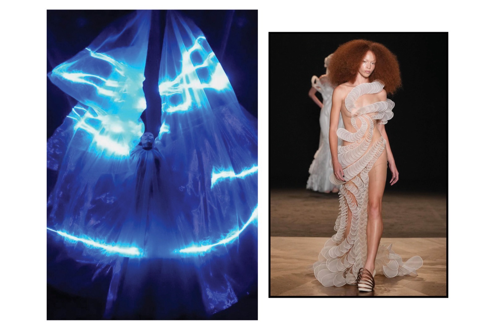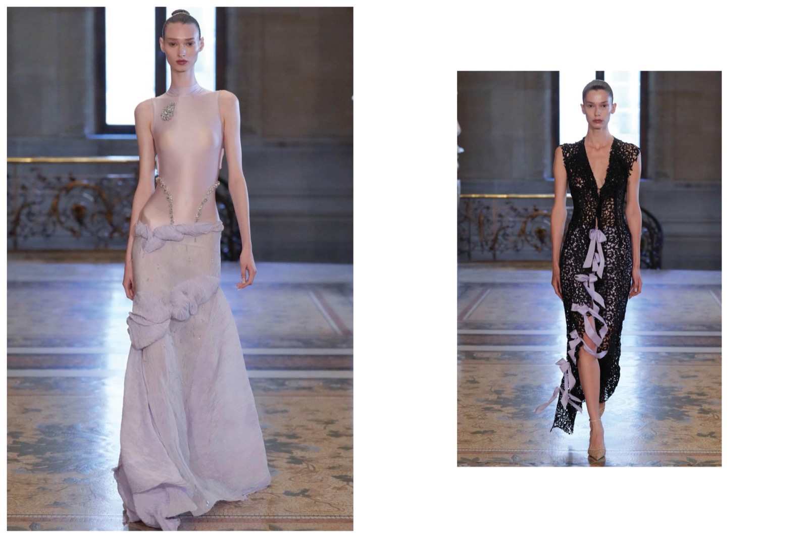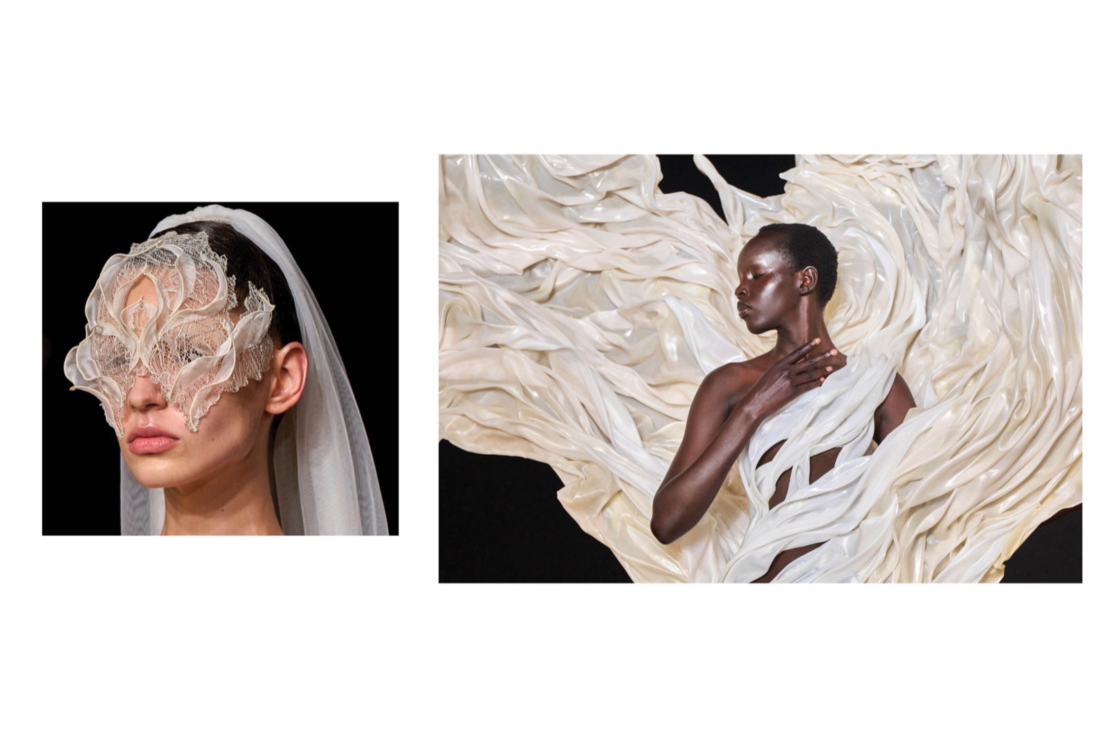 Couture this season is controlled, focused, and unflinching. Designers reject excess in favor of clarity. Every line, every material choice feels intentional. There’s a sense of weight in the work, emotional, structural, historical. Fashion turns inward, away from performance, and back toward presence, craft, and the body itself. Across the collections, from Schiaparelli’s stripped-back intensity to Iris van Herpen’s liquid forms, from Balenciaga’s quiet farewell to Robert Wun’s tense, sculptural drama, from Viktor & Rolf’s doubled silhouettes to Peet Dullaert’s precise draping, a shared language takes shape, controlled, intentional, and exact.