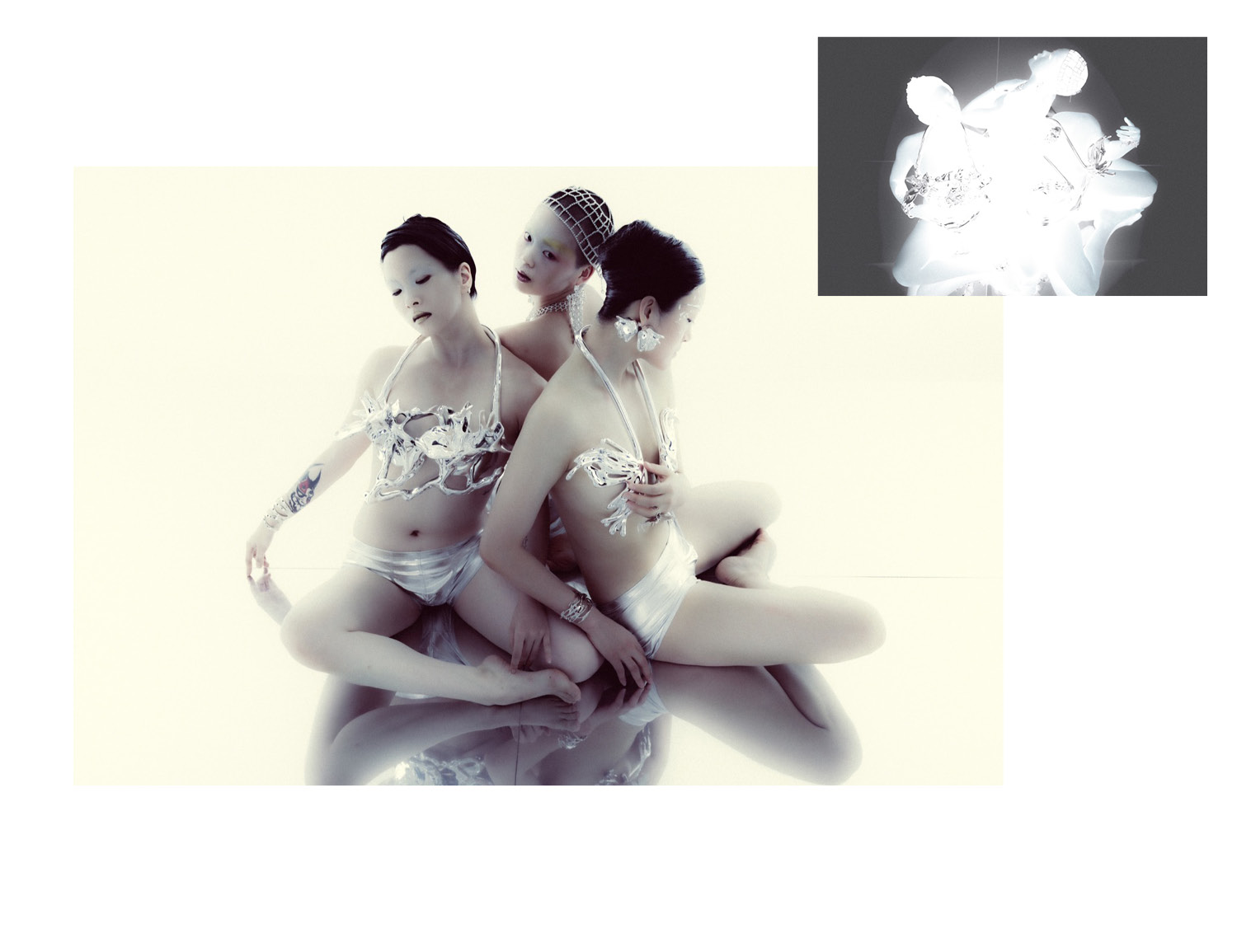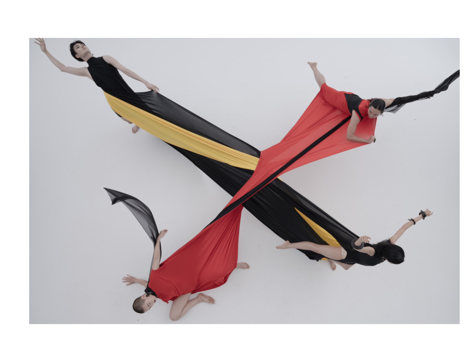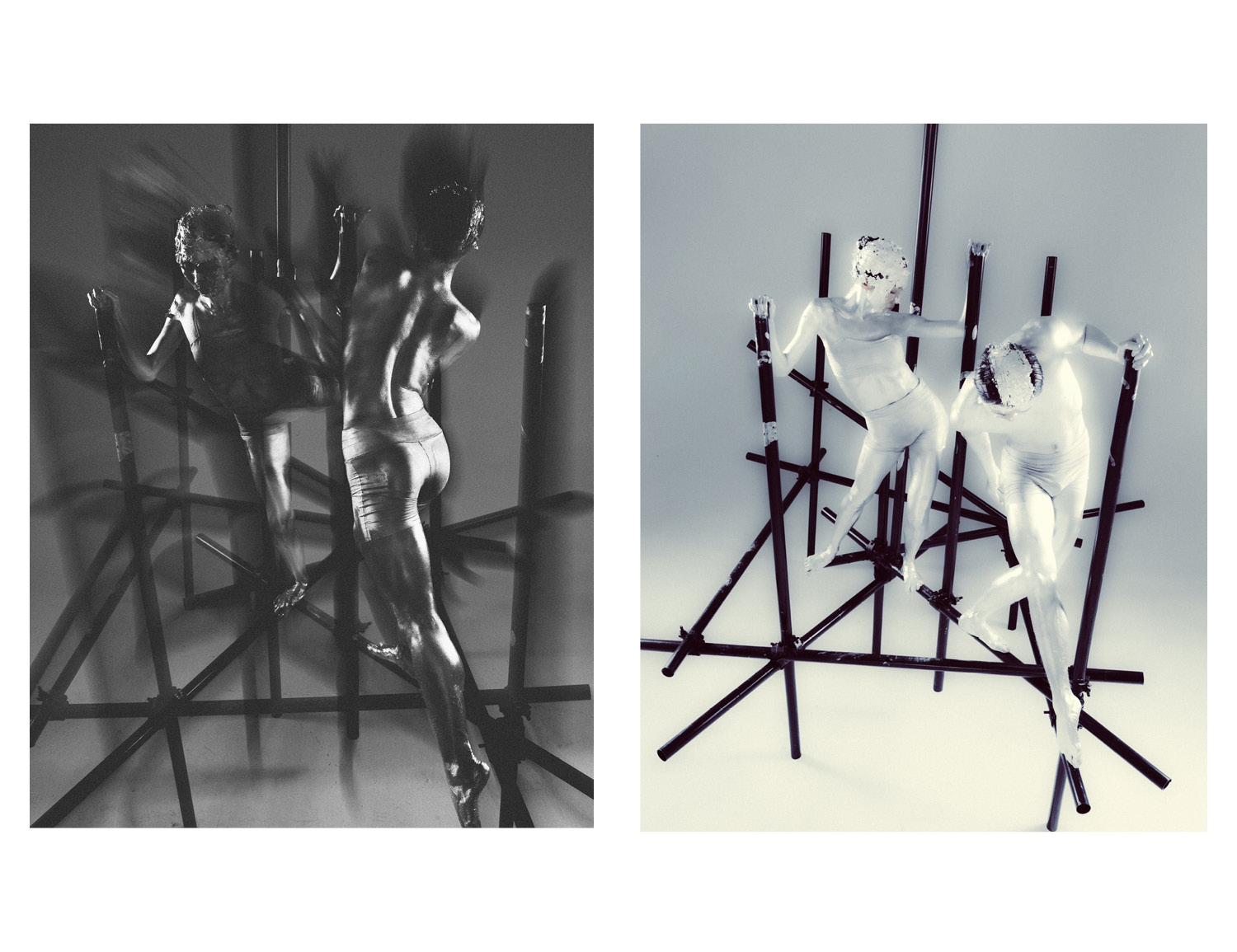 The human body becomes a geometric and expressive system, where movement and stillness search for balance. Inspired by classical proportions, form is deconstructed and reshaped through patterns, fabrics, and reflections. A series by WanJin.