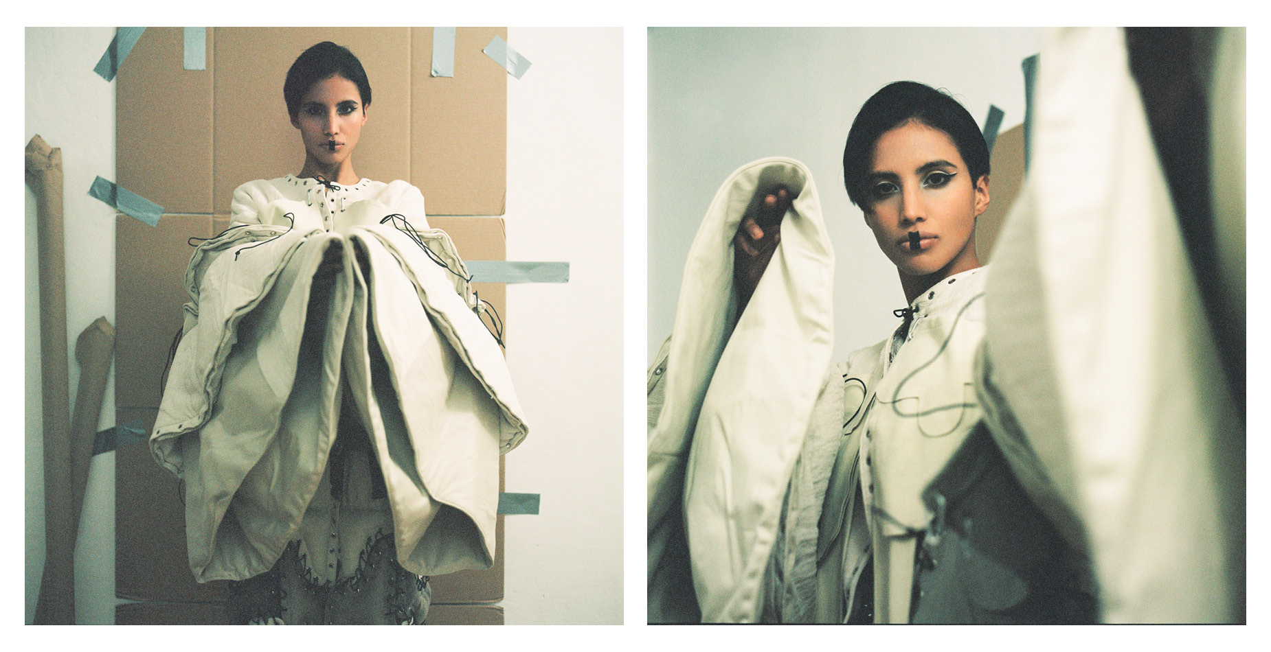The series combines fashion from up-and-coming German designers and established independent designers. The selected fashion is characterised by deconstructivist elements that are constantly changing - existing today, reinterpreted tomorrow. It is a tribute to transience and the creative potential in fashion. Photographed by Karen Cavallaro.