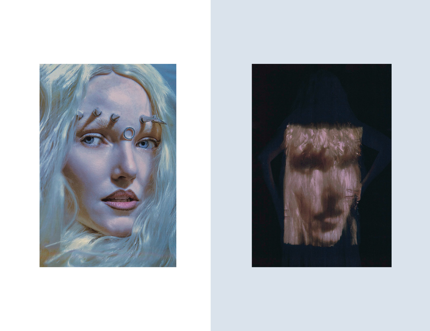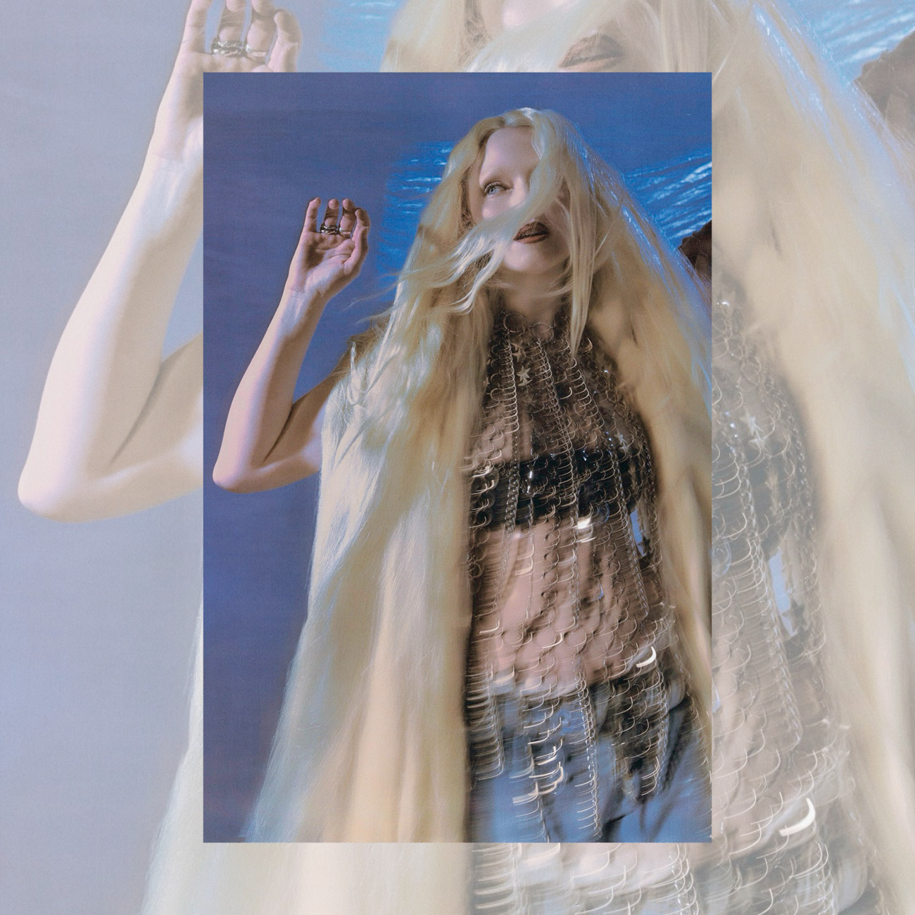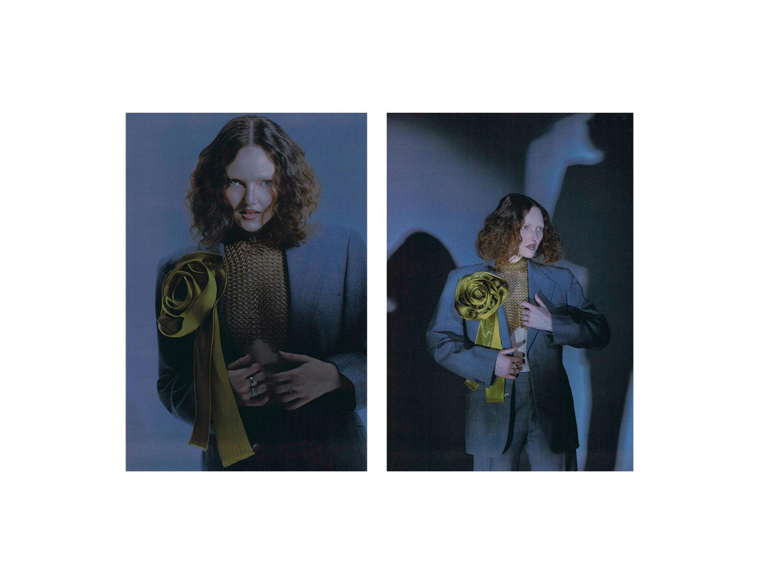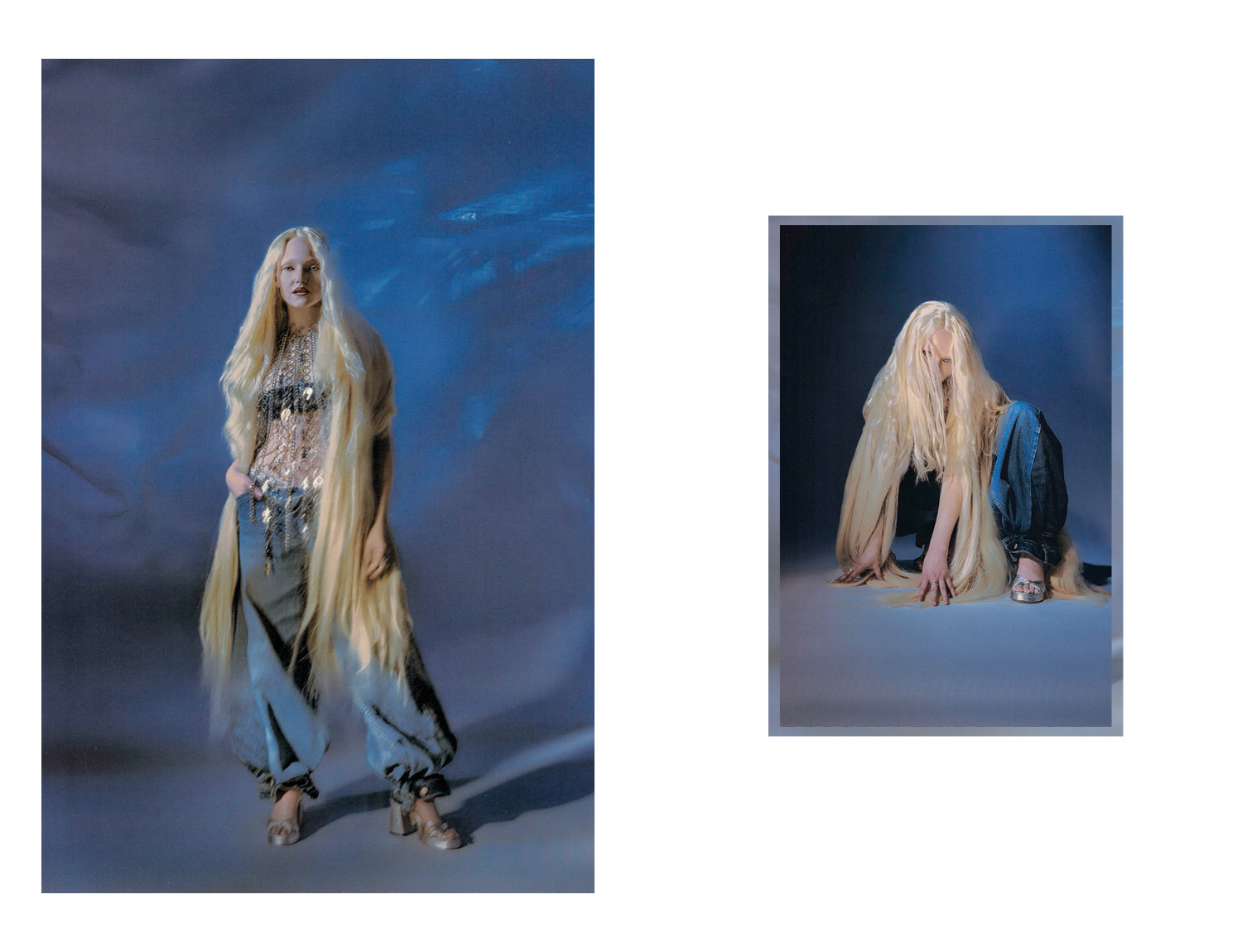 Soft blue haze moves across each frame, pulling into a world where motion blurs and shadows soften every contour. Dark, unfocused tones distort, creating images that linger like fading impressions. Photographed by James Morris.