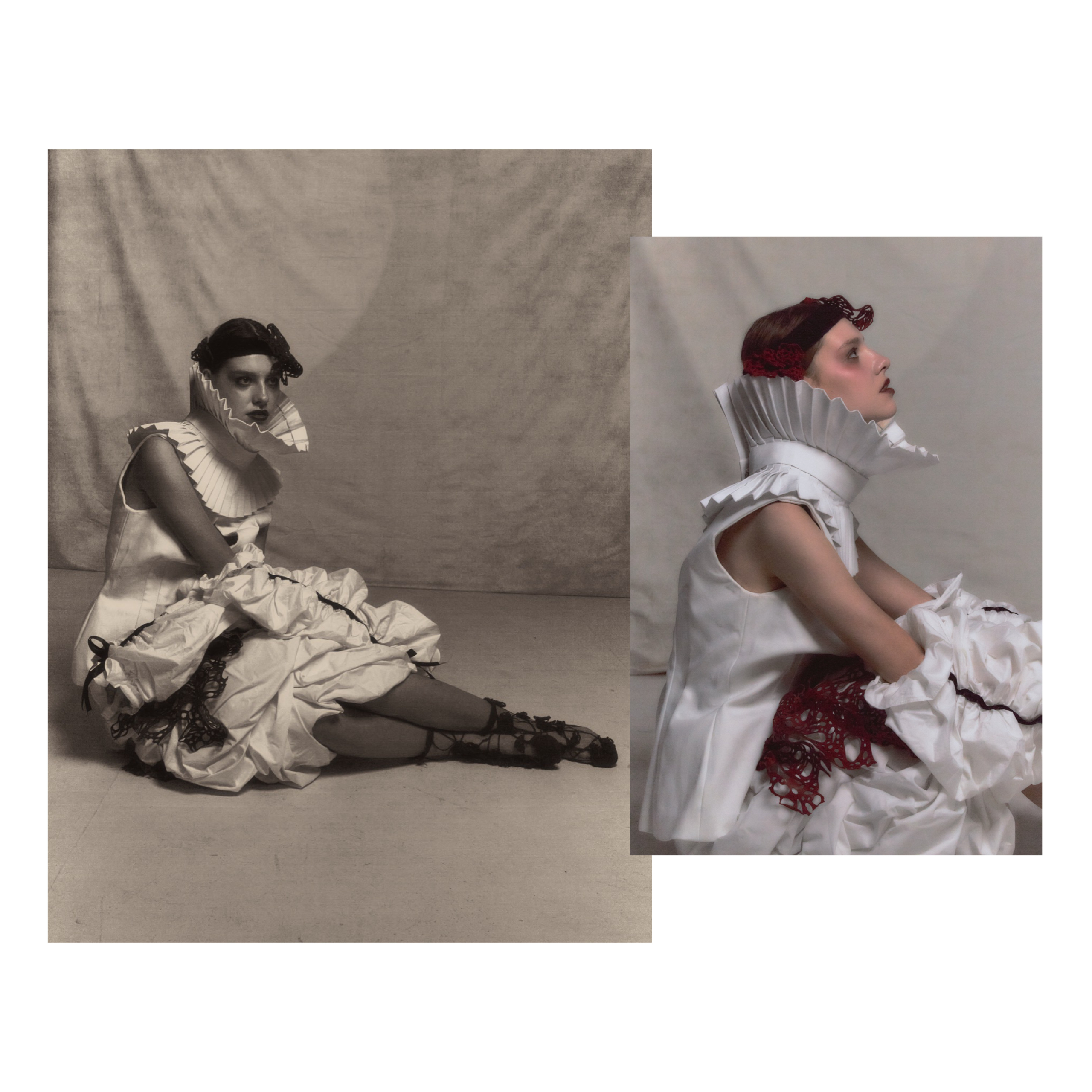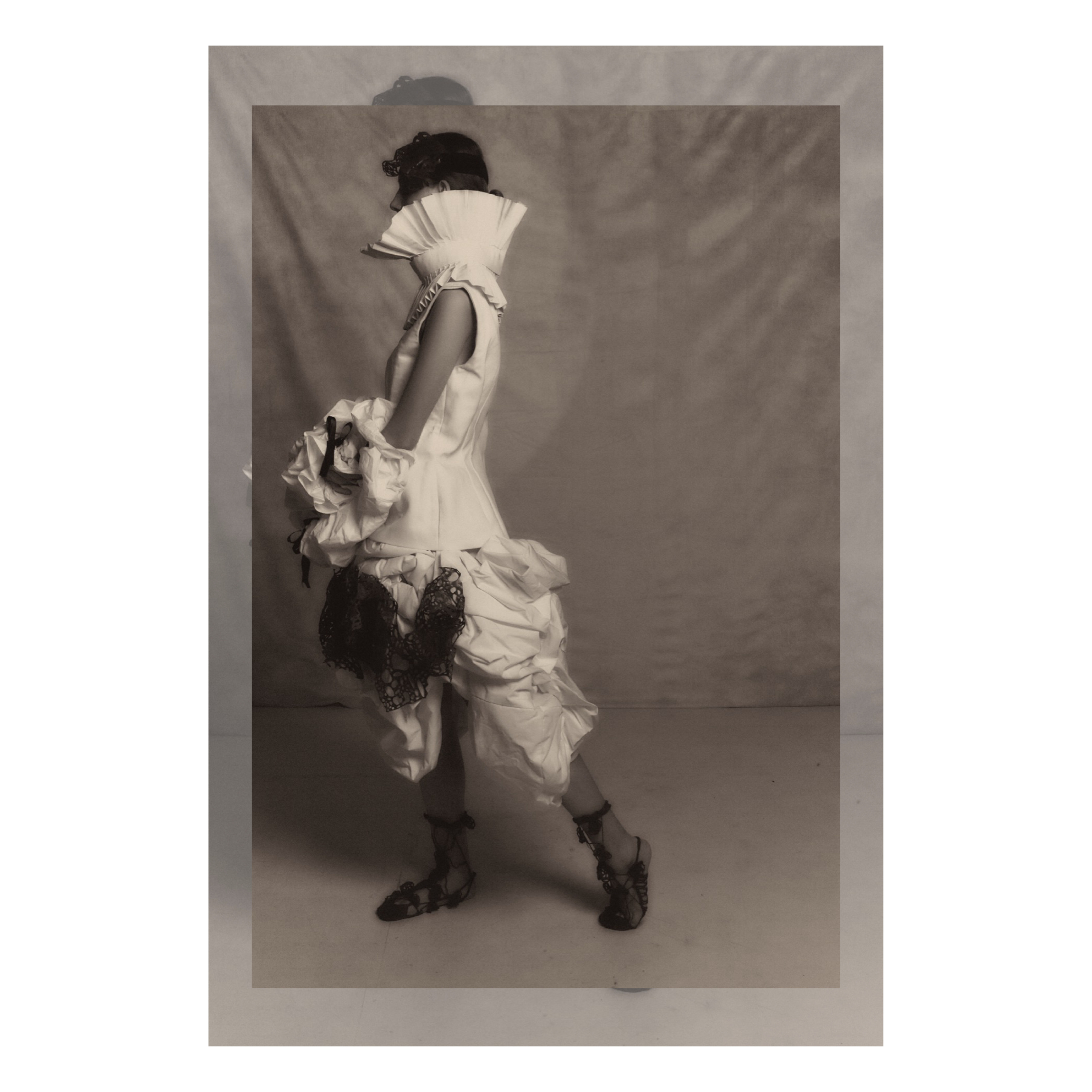 Then I move into draping. Draping is where the work becomes physical and honest. I treat the body as narration, and silhouette becomes the first sentence. Once the silhouette is speaking, I push into material tests and structural details, refining the texture and the hidden architecture until the garment carries the emotional weight it needs.