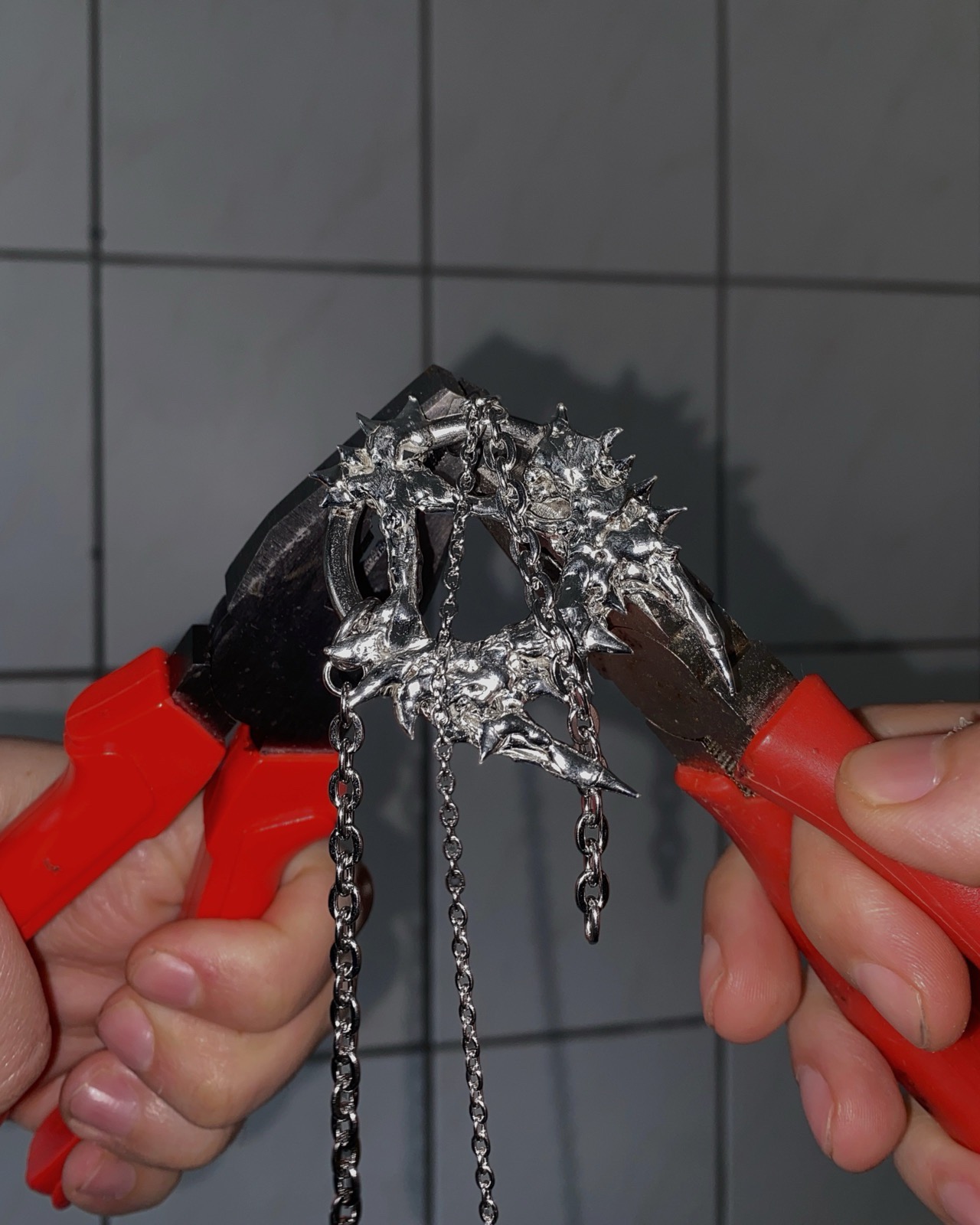 I try to avoid making things too clumsy, heavy, or fragile — those elements can make a piece hard to wear. Aesthetically, though, I never try to limit myself. I think that’s how I maintain the balance between wearability and experimentation.