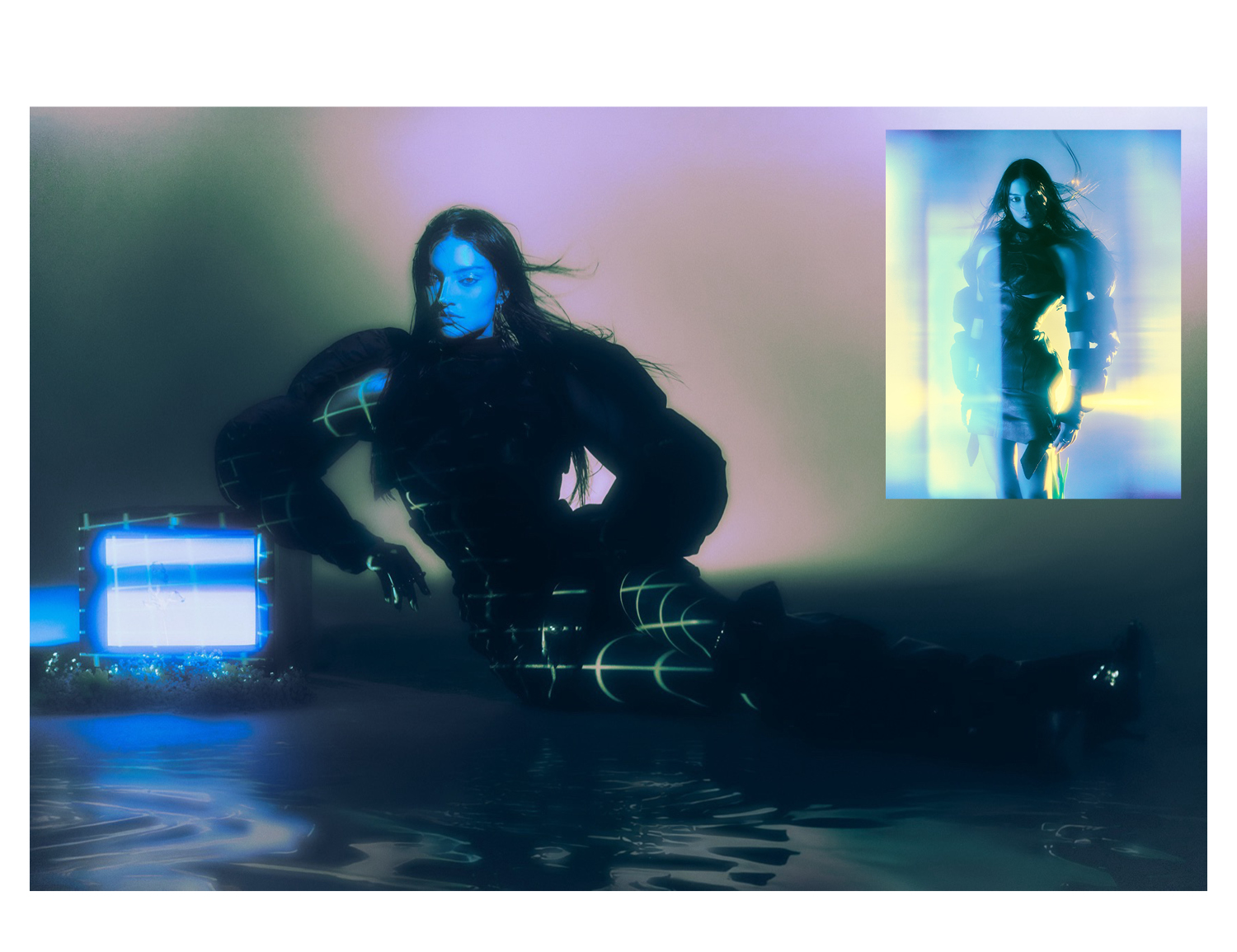 I first discovered Brian Ziff’s work through his collaboration with Grimes, there was this unforgettable image of her cradling baby X, a very futuristic Madonna and Child, glowing in soft neon light. That image stuck with me. It was ethereal, otherworldly, yet unmistakably human and deeply beautiful. Then we had the chance to collaborate on a photoshoot. Brian from the beginning understood that this wasn’t just a pretty photoshoot; it was visual advocacy. He is truly the most talented photographer I have worked with and was able to capture the essence of strength, beauty and otherworldliness I wanted to communicate.