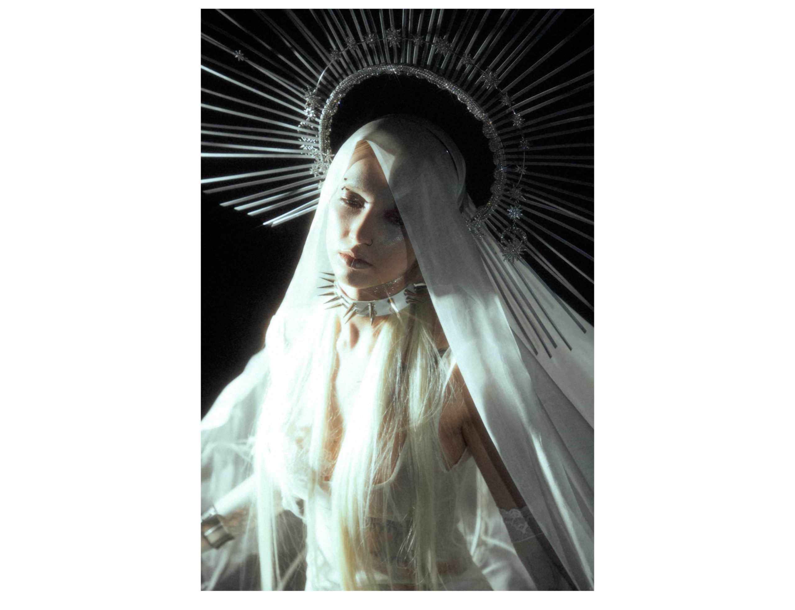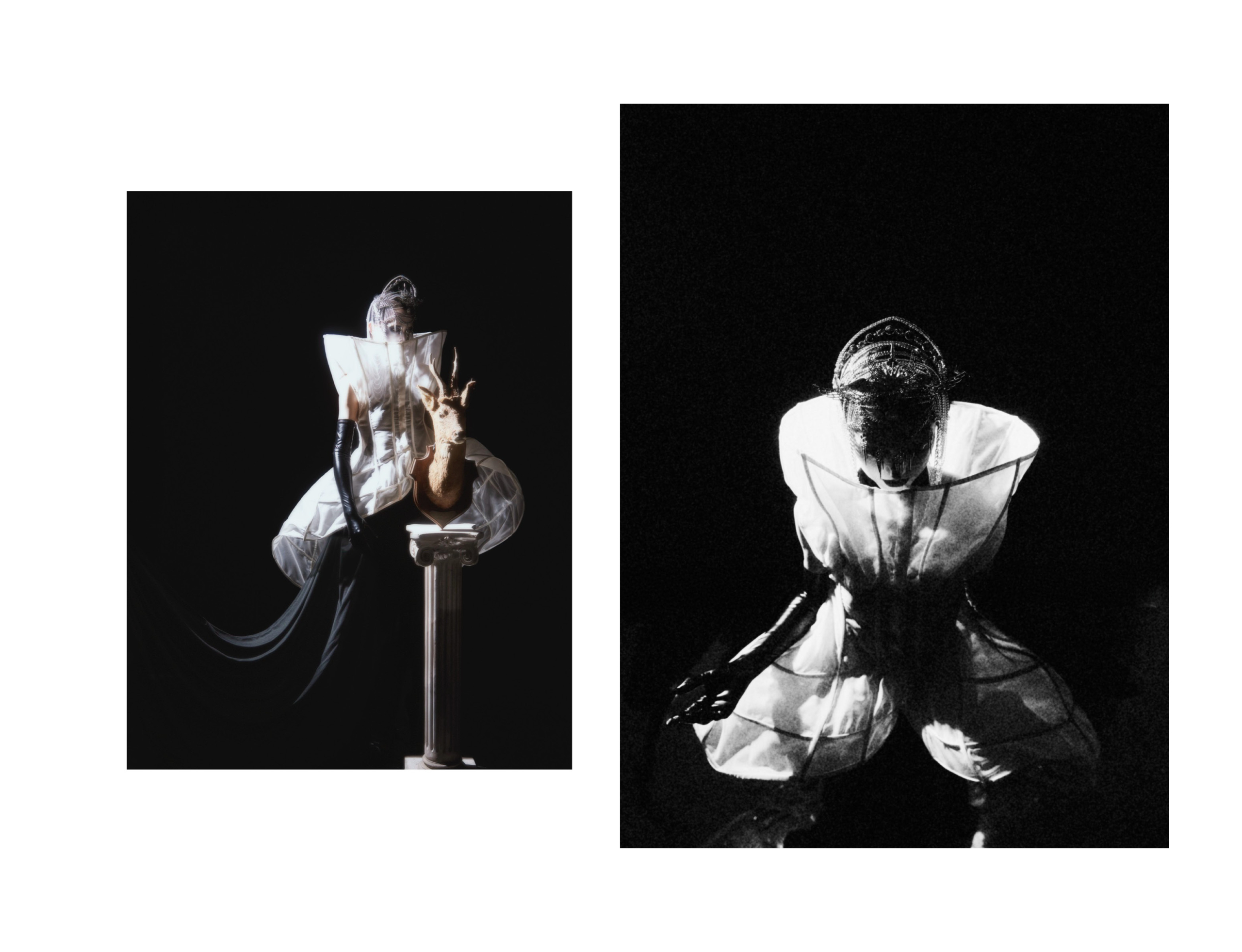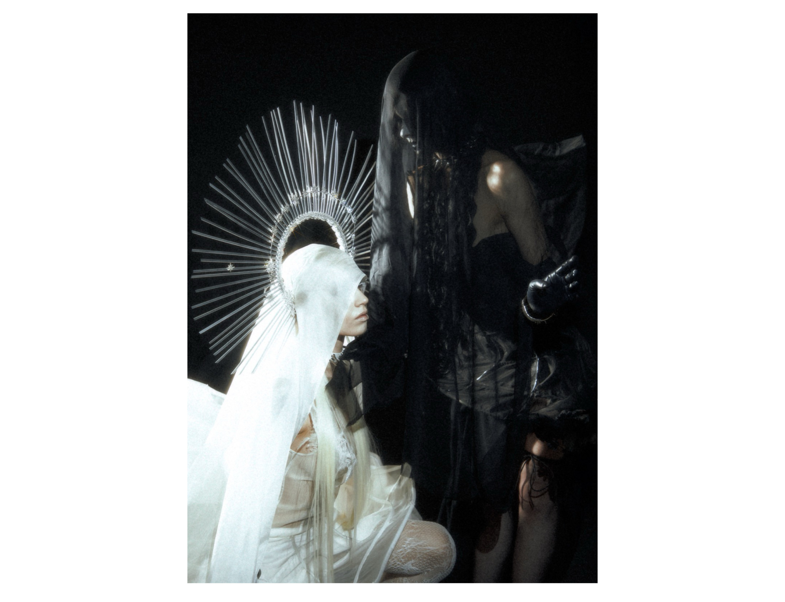Black and white collide in a suspended atmosphere where light and shadow orbit each other like distant planets. Radiant structures echo the presence of a silent sun, while darkness expands like a quiet lunar gravity. Metallic halos and sharp reflections cut through the void, creating a cold, dreamlike tension between eclipse and illumination. A series by Junxian Pan.