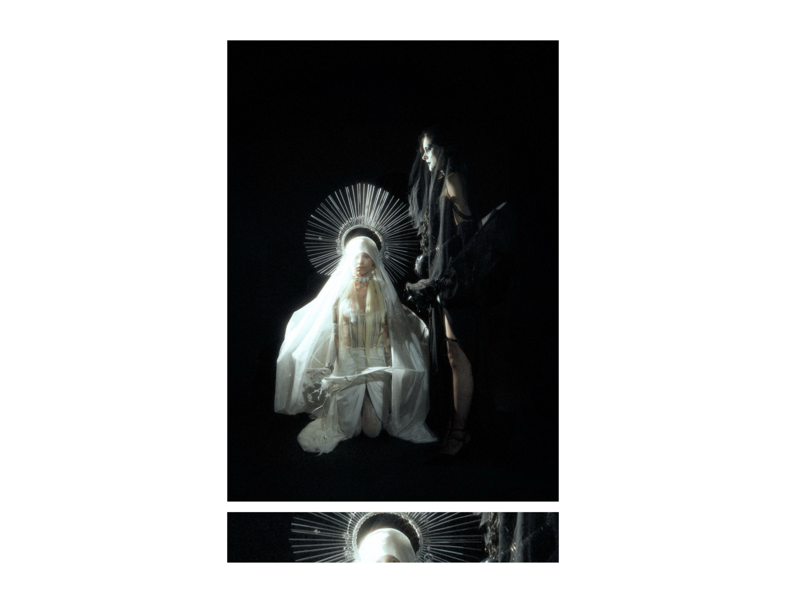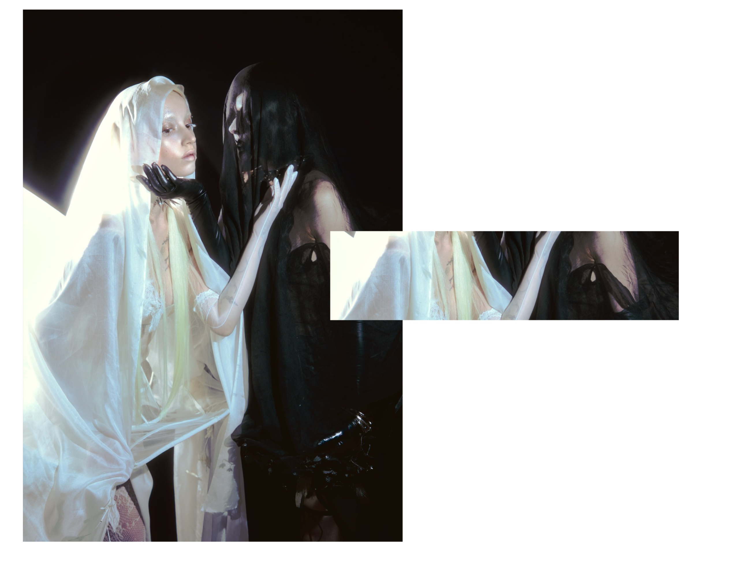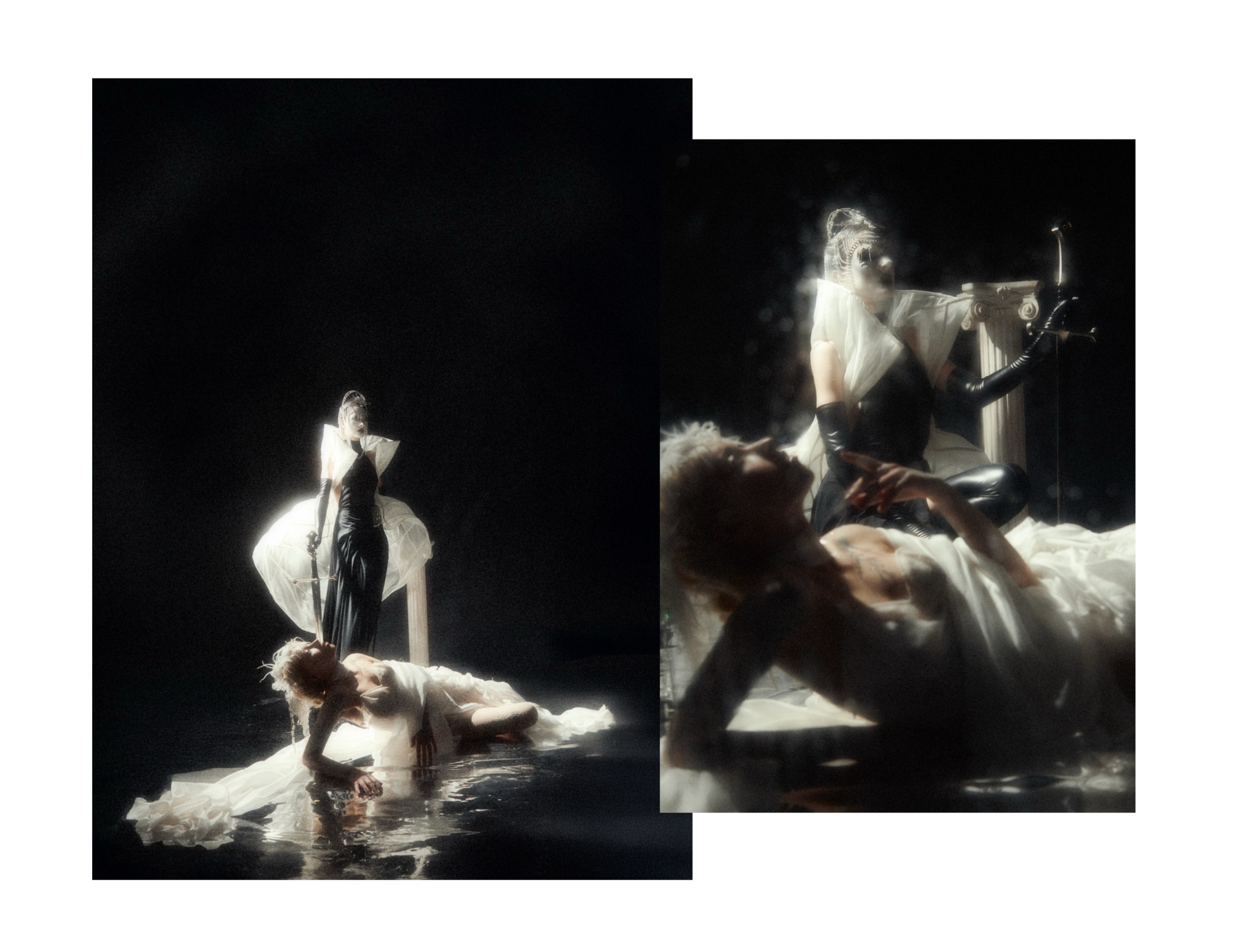 Black and white collide in a suspended atmosphere where light and shadow orbit each other like distant planets. Radiant structures echo the presence of a silent sun, while darkness expands like a quiet lunar gravity. Metallic halos and sharp reflections cut through the void, creating a cold, dreamlike tension between eclipse and illumination. A series by Junxian Pan.