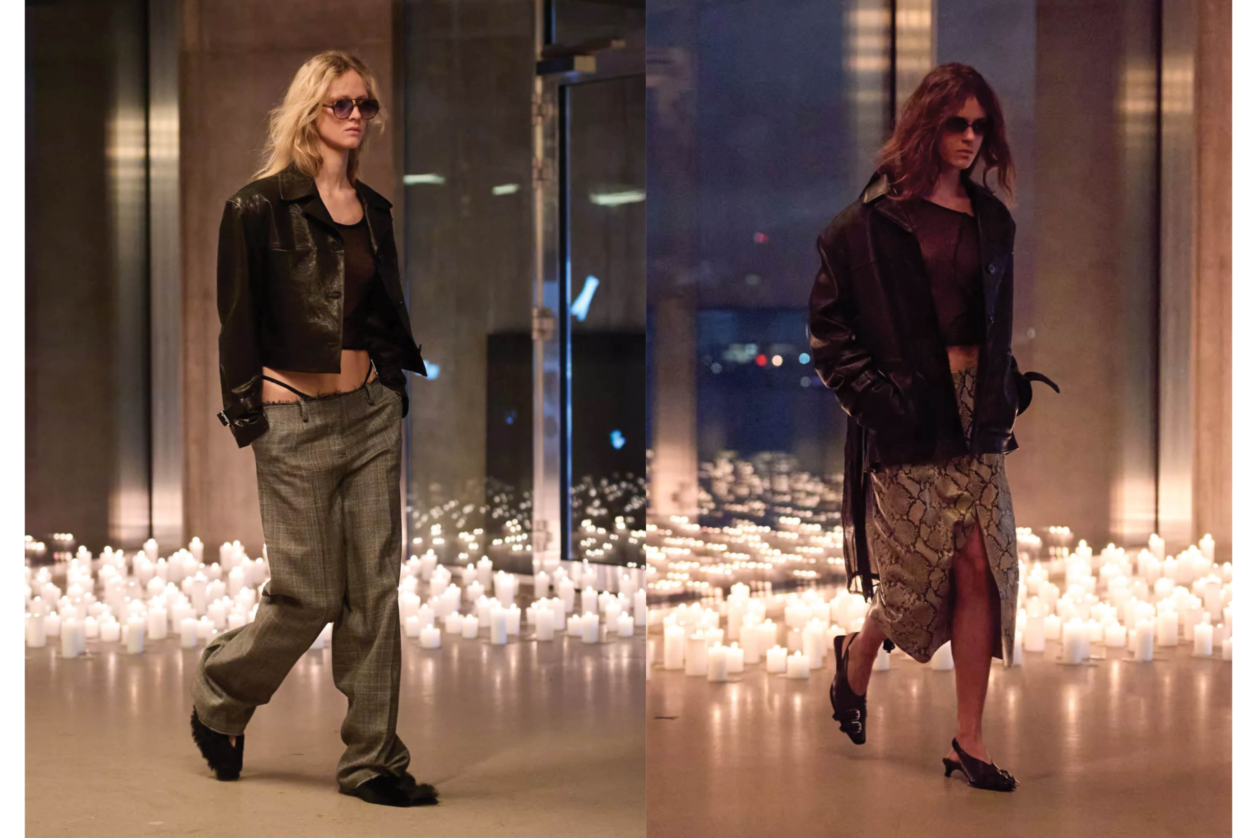 For us the point isn’t to resolve these forces but to make them wearable and believable in everyday life. Two signatures sit at the center of our current language: mesh splicing and deconstructed construction and a high-flash custom-developed fabric created specifically for the brand. Mesh for us is never simply sheer. It’s a way to reveal and restrain at the same time to create breath precision and controlled placement against the body. Through splicing and deconstruction a garment becomes a map: lines interrupt seams shift and support appears where you least expect it. Mesh is also our clearest expression of night-time inspiration how the body feels after dark: softened sharpened and slightly untouchable.