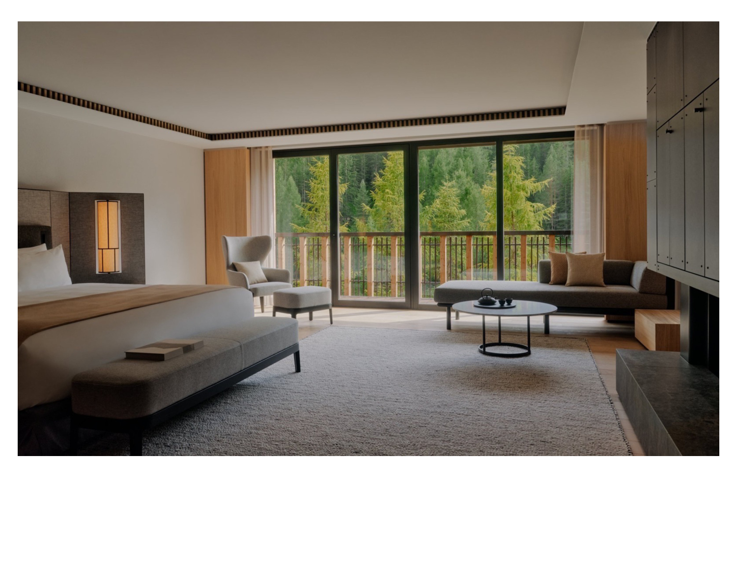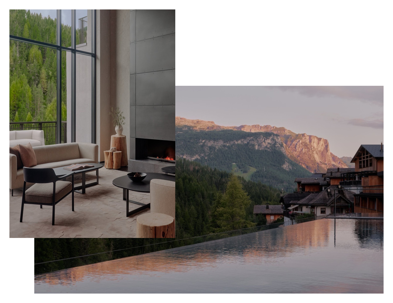 Set in the village of San Cassiano, Aman Rosa Alpina sits at the meeting point of forest, stone, and sky. The Dolomites rise behind it in pale vertical formations, shifting from soft gold to muted silver as the day moves across the valley. The hotel feels both sheltered and open, held within the Alta Badia landscape, and yet quietly detached from it, suspended above the surrounding pines. Everything begins with the terrain. Everything returns to it.