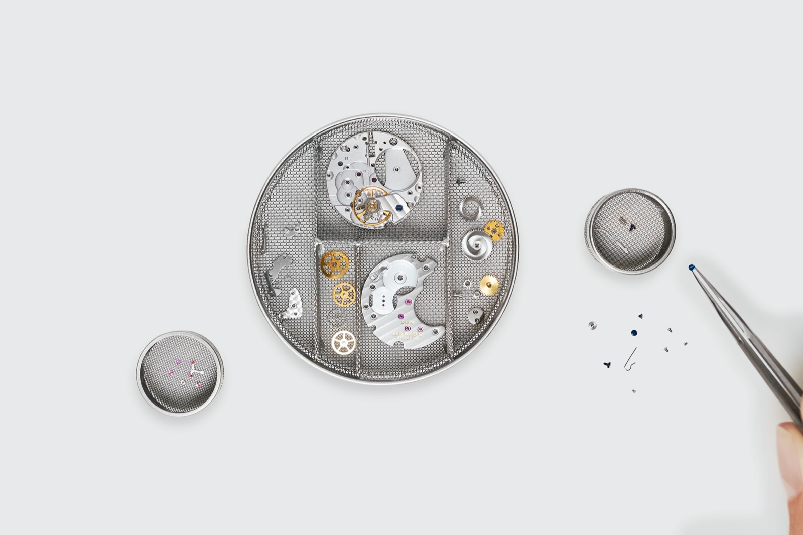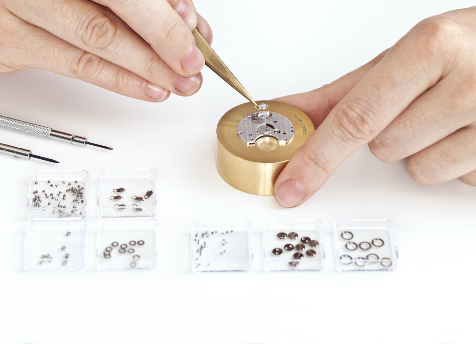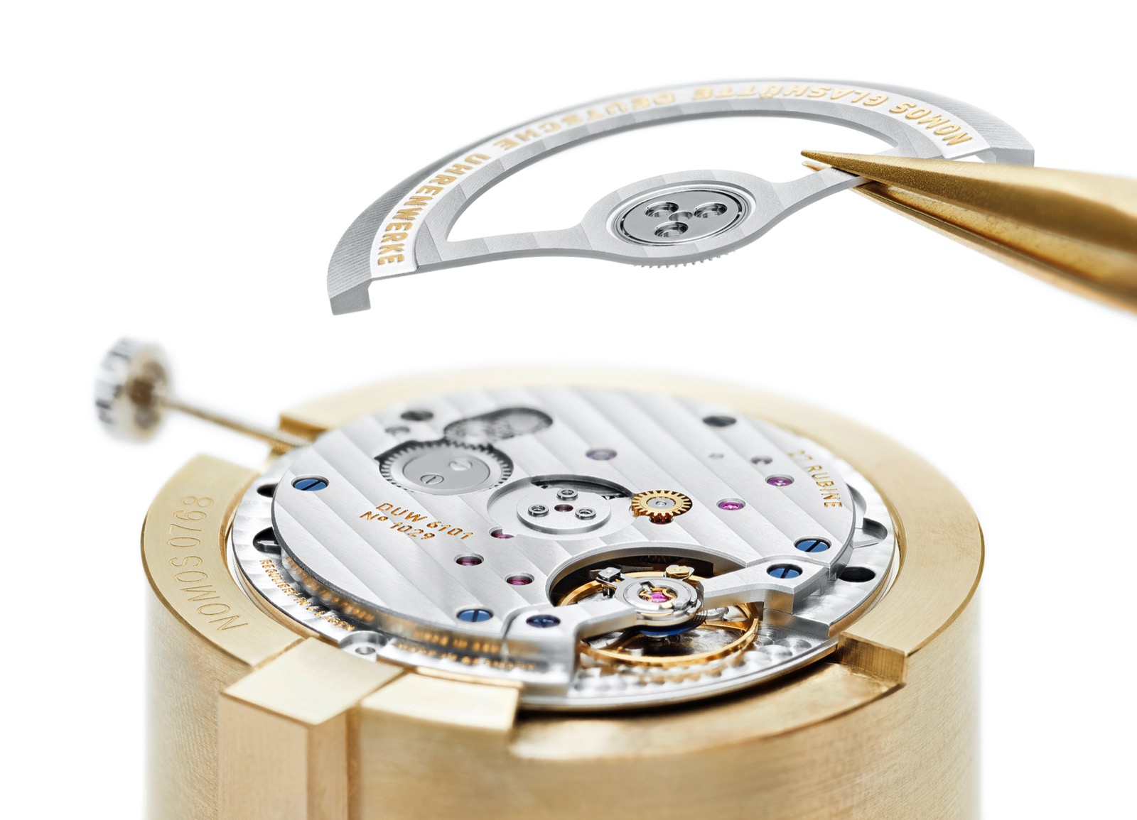 Nomos, in collaboration with the Technical University of Dresden, focused its efforts on pursuit of a new in-house escapement mechanism to claim complete independence. Despite obstacles, such as the intricate design and microscopic dimensions of escapement components, the company overcame the obstacles through years of intense study, experimentation, and trial-and-error, finally succeeding in 2014. To date, Nomos produces eleven different caliber movements with multiple patents, including an in-house date mechanism, a swing system, and a power reserve indicator. The company’s calibers manifest excellence in quality, lightness, and thin design. The manufacture of virtually all components is artisanal and precise, from milling plates and bridges to wheels and bluing screws to the Nomo calibers themselves. The process from the initial design draft to final product can take years, illustrating Nomos’ unwavering commitment to precision, quality, and intricate detailing.