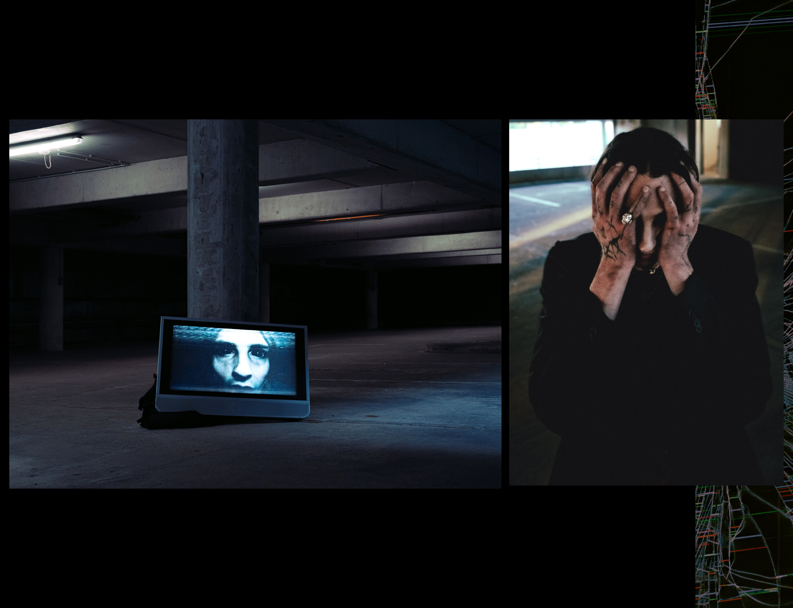 Screens offer access, yet entry comes before recognition and looking becomes an act of extraction. The body appears only after displacement, reduced to signal and framed by rigid architecture. The work observes how images behave under pressure, how presence survives inside control. Created in collaboration with musician Kin Amor, the visuals echo his track "skinny shadow", a slow-burning dark pop piece where intimate vocals move within a restrained structure.