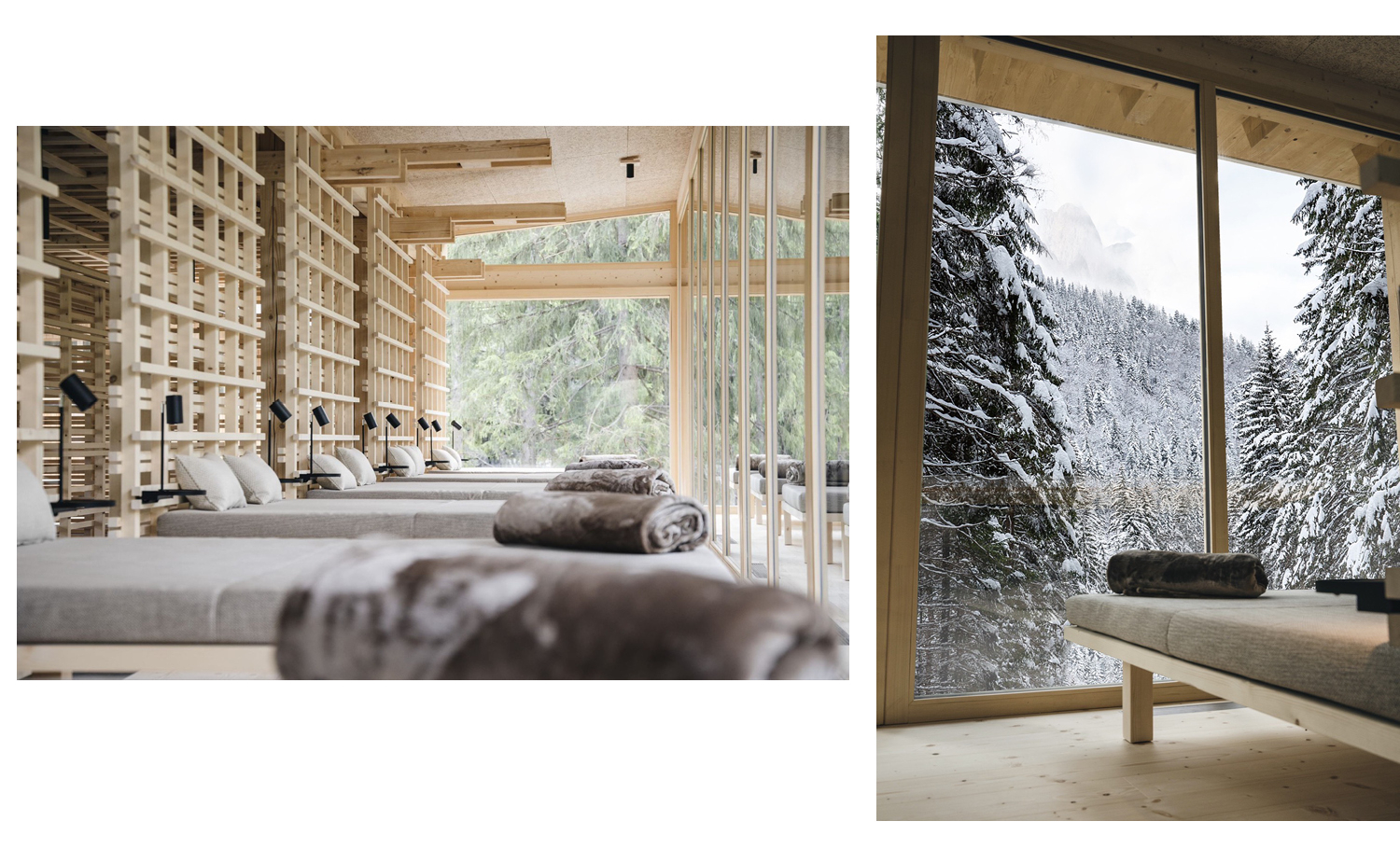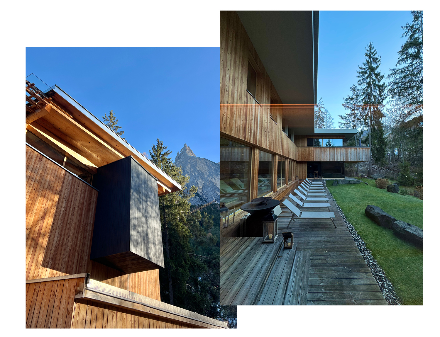 Last but not least there is the hotel’s connection to art, not as mere decoration but as programmed interconnection. Sensoria runs collaborations with South Tyrolean artists, including Peter Senoner and sculptor Aron Demetz, with dedicated Art Edition periods where their work shapes the atmosphere and guests can engage through exclusive studio visits, active workshops and events. Rooted in Val Gardena’s centuries-old woodcarving tradition, where craft has long been a form of cultural transmission rather than ornament, Sensoria extends that lineage into the present. This is where the place stops being only a wellness/mountain retreat and becomes a cultural container.
