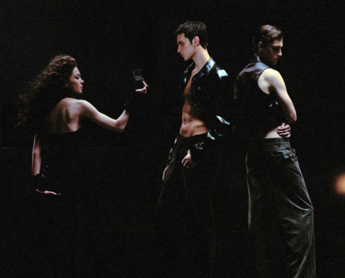 In a space where emotion unshapes and presence fades away, Kori He’s photographs glow in fluorescent light, the colors almost burning away the subjects until they seem to vanish. Kiki Peng Studio’s sculptural silhouettes echo this slow disappearance, fragile traces of bodies caught inside their own distant world.